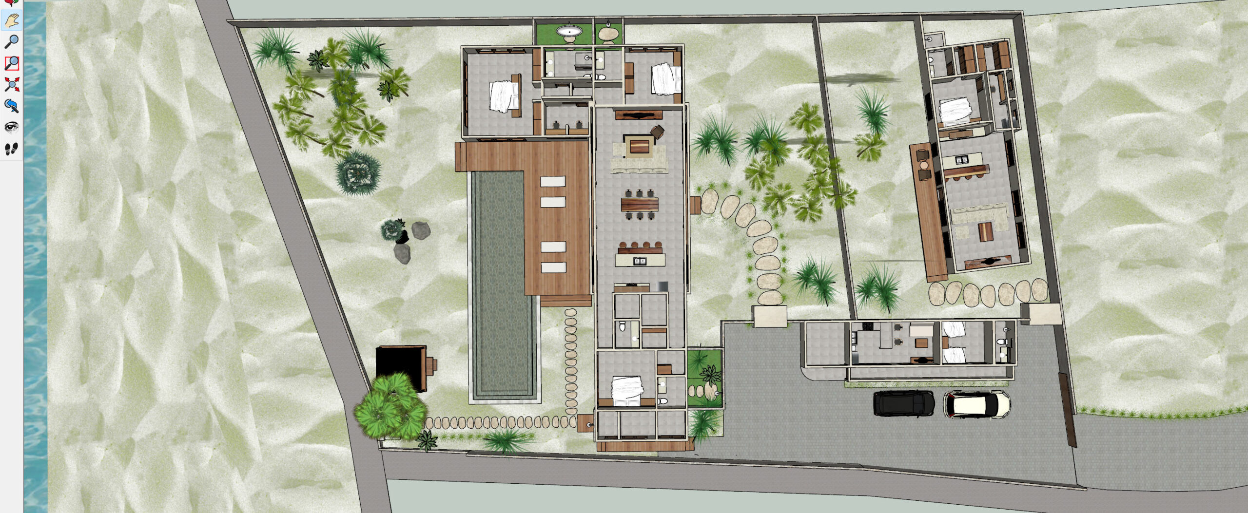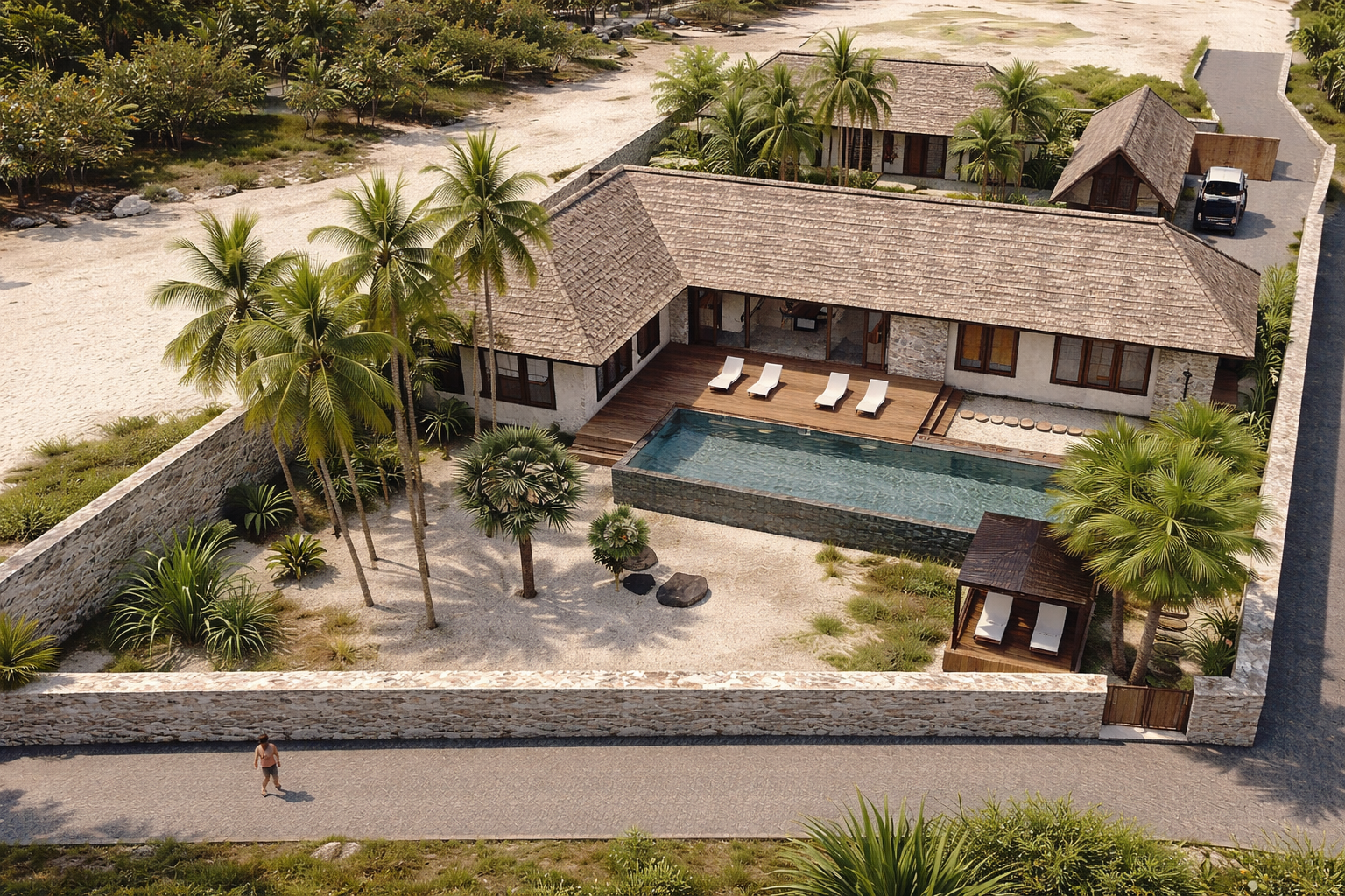 At the front of the lot we also have 1100 m2 undeveloped beachfront land with the possibility to build a 220 m2 villa.